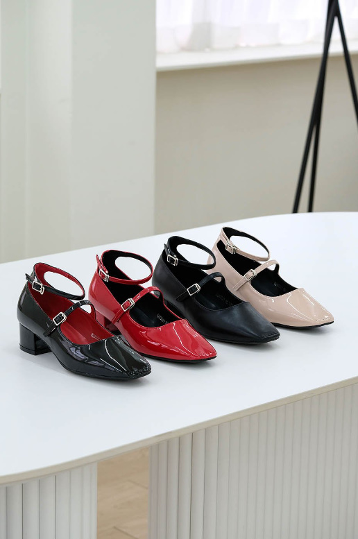 가을신상 로맨틱 메리제인 투스트랩 미들굽 펌프스 구두 힐 - 블랙, 레드, 베이지