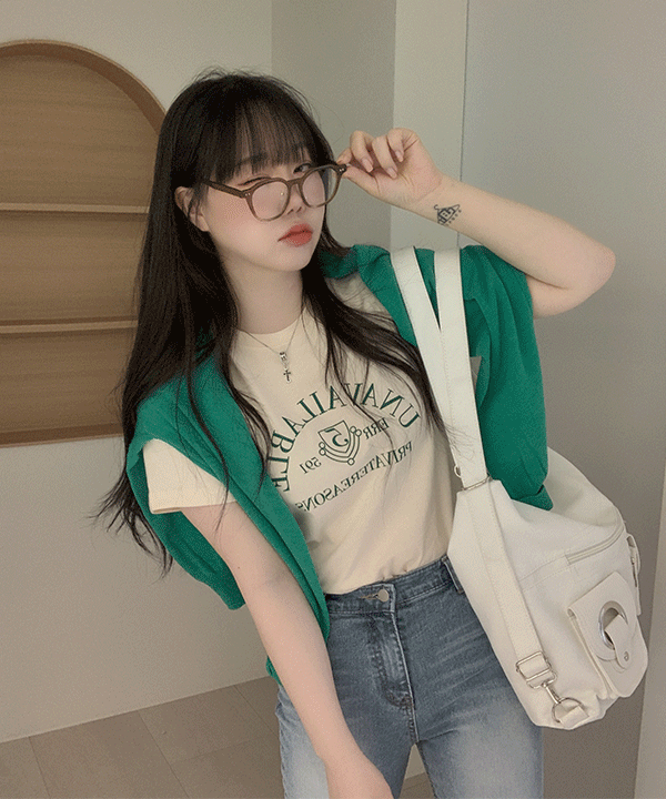 #11834 레터링 스탠다드 라운드 코튼 반팔t : 3color