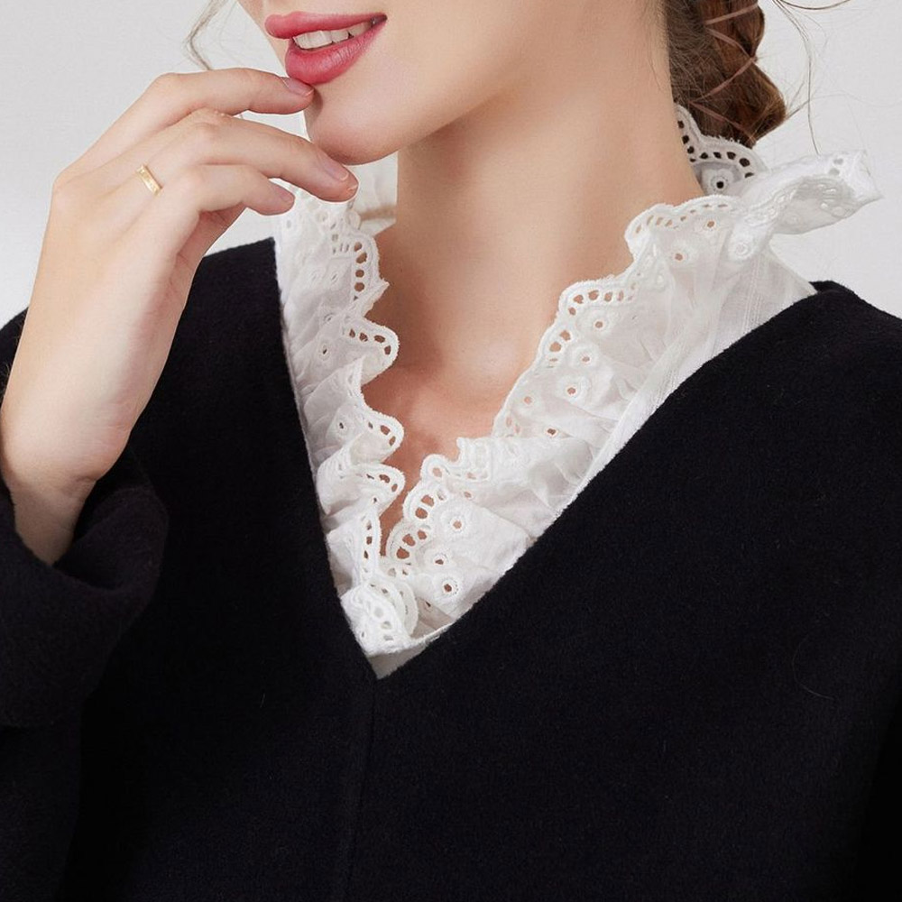 씨네 펀칭 넥케이프 레이스 목 블라우스 페이크카라