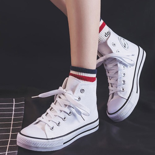 DS60 심플 캔버스 하이탑 스니커즈 남녀공용 빅사이즈 빈티지 캐주얼 데일리 대학생 커플 신발 남자 통굽 발목 운동화 단화 2cm 225 255 260mm