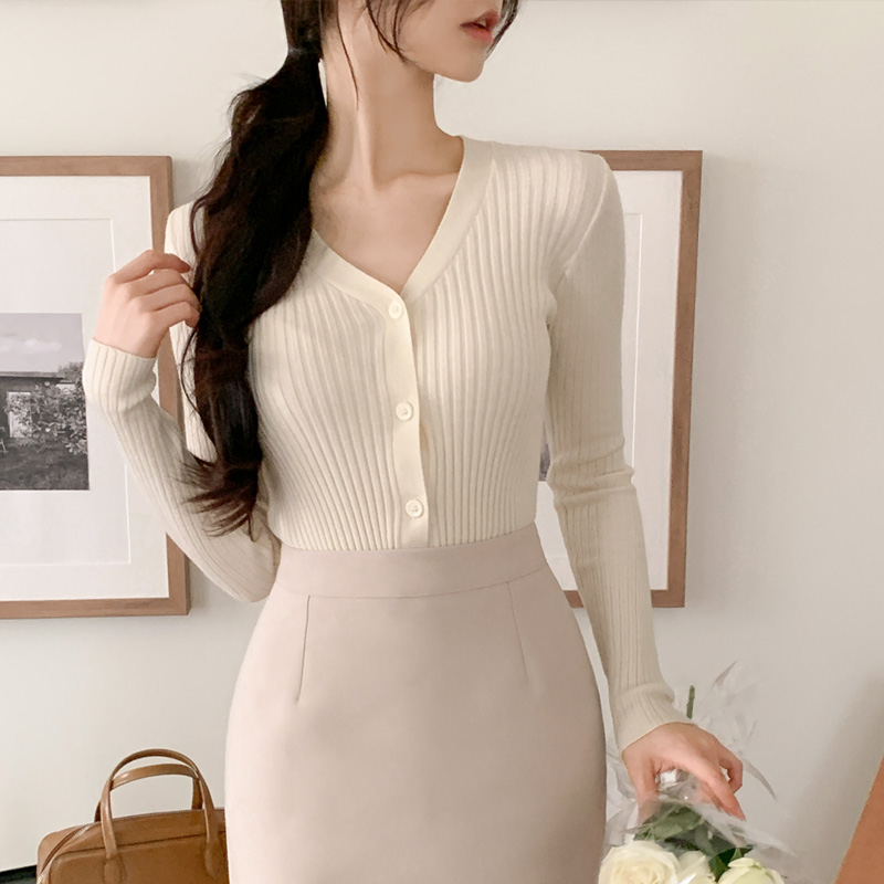 (몸매보정/브이넥가디건)1000장 돌파✨ 슬림핏 골지 니트 가디건 여리핏 데일리 데이트룩 출근룩 하객룩 니트가디건 나들이룩 이너가디건 cd3042