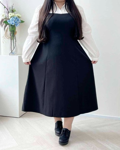 (66-110/3size) 제니바 시크도도 스트링 롱원피스 빅사이즈 셔츠 일체형 하객룩 오피스룩 강추 4XL 플레어 원피스