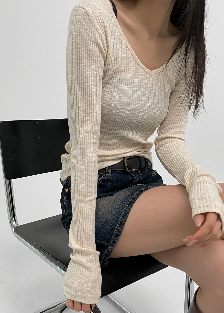[1만장판매] [MADE] 루린드 투웨이 브이넥 긴팔티