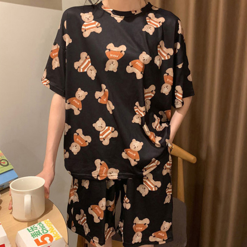 곰돌이 캐릭터 잠옷 세트 봄 여름용 시원한 얇은 반팔 파자마