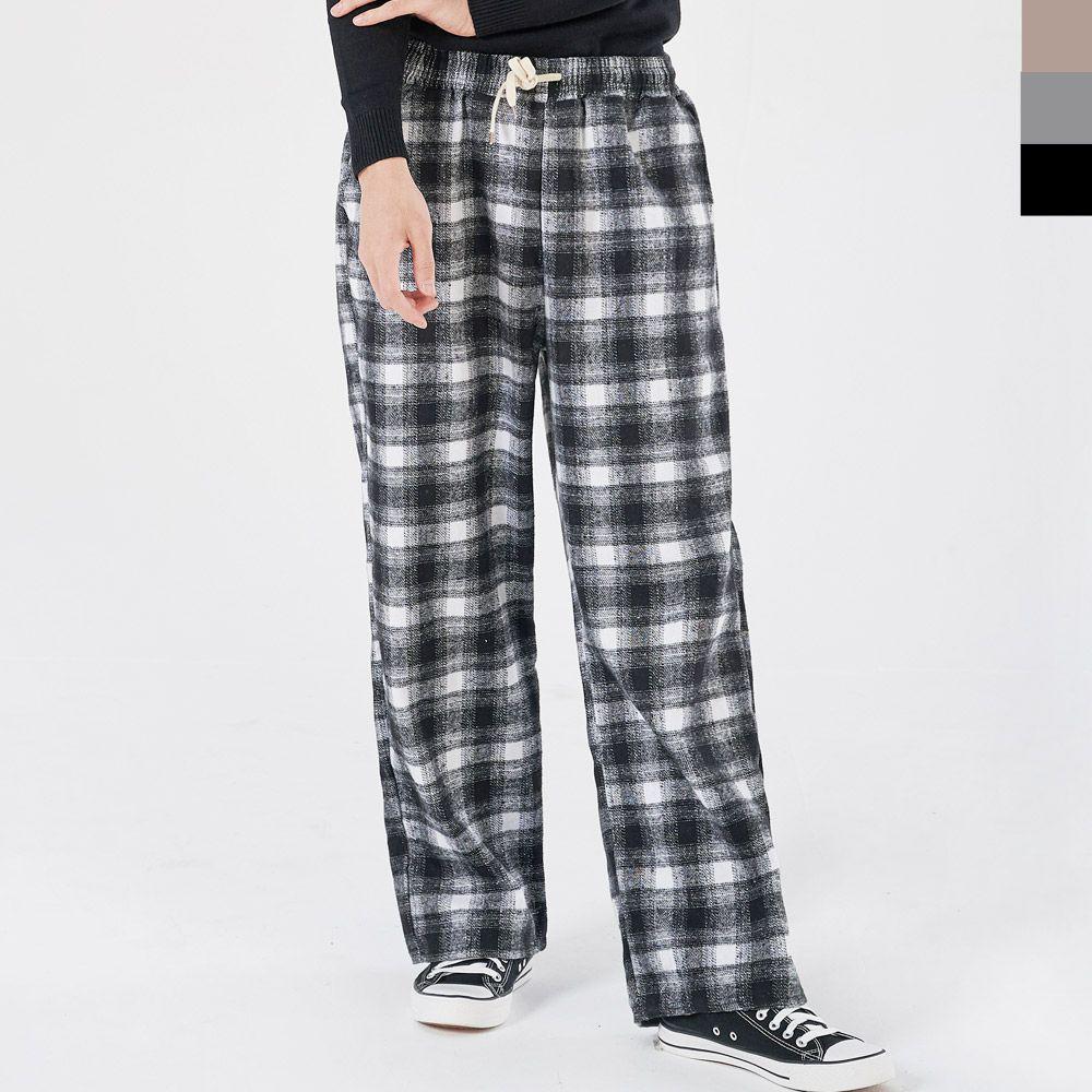 남자울사각패턴와이드팬츠 남성하의 면바지