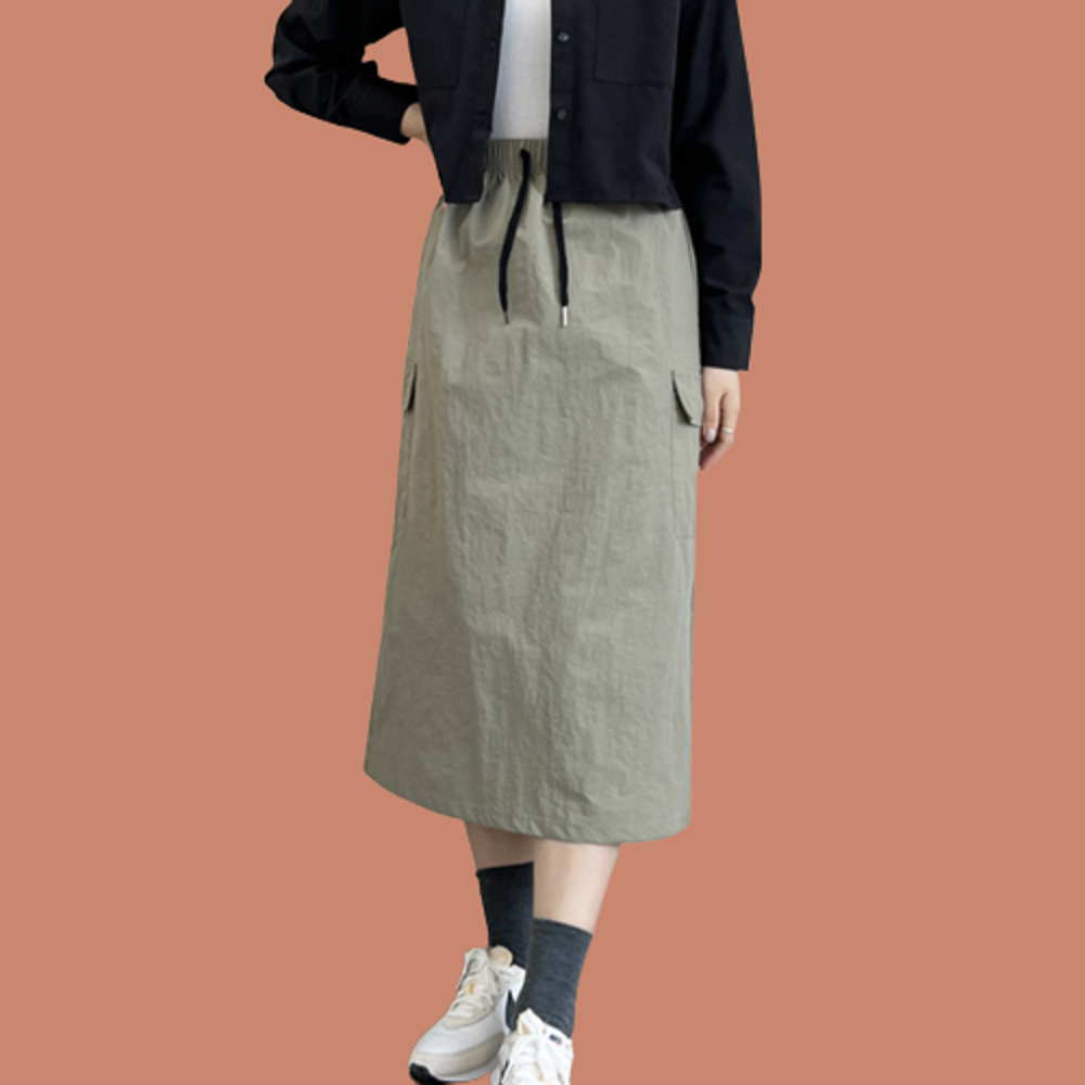 밴딩 카고 롱 스커트 A라인 편한 트임 치마 카키 블랙