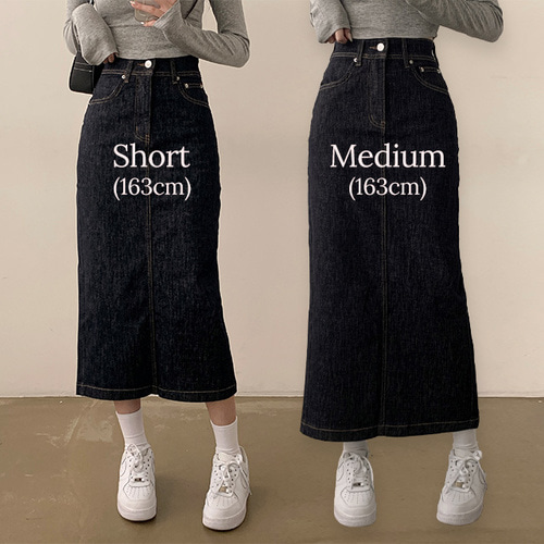 [키작녀/청치마] 바이트 하이웨스트 스티치 생지 데님 A라인 롱 스커트 (2color)