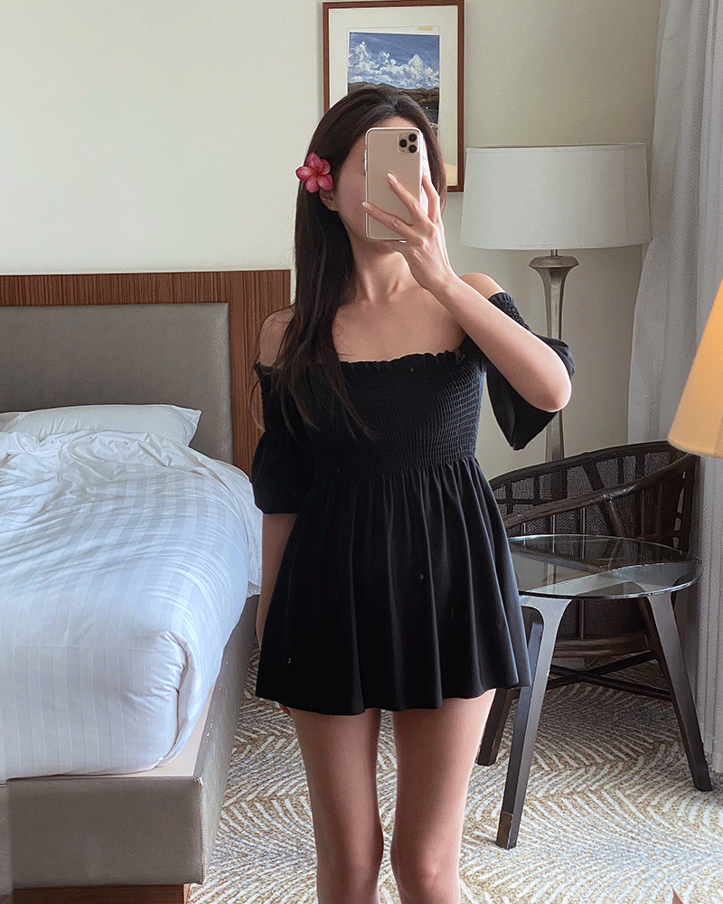 [BIGSIZE/당일출고] 체형커버 블랙 마이레이디 원피스 비키니