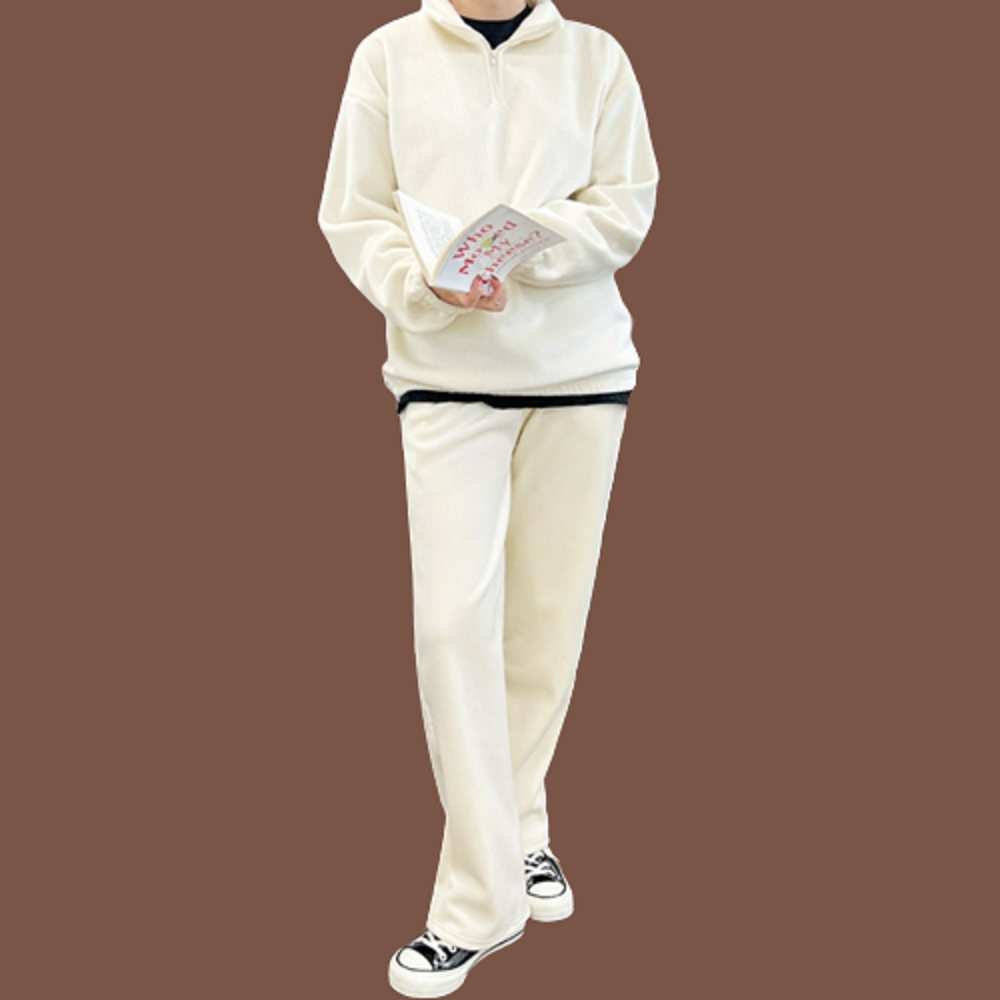 겨울 기모 스웨트 셋업 여자 트레이닝 운동복 세트 긴팔 티셔츠 와이드팬츠