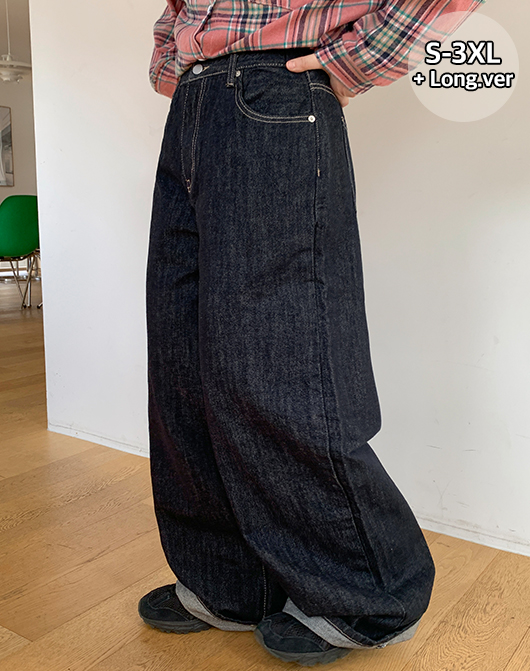[1천장돌파/기장옵션] 힛시 밴딩 와이드 데님 팬츠 (2color)