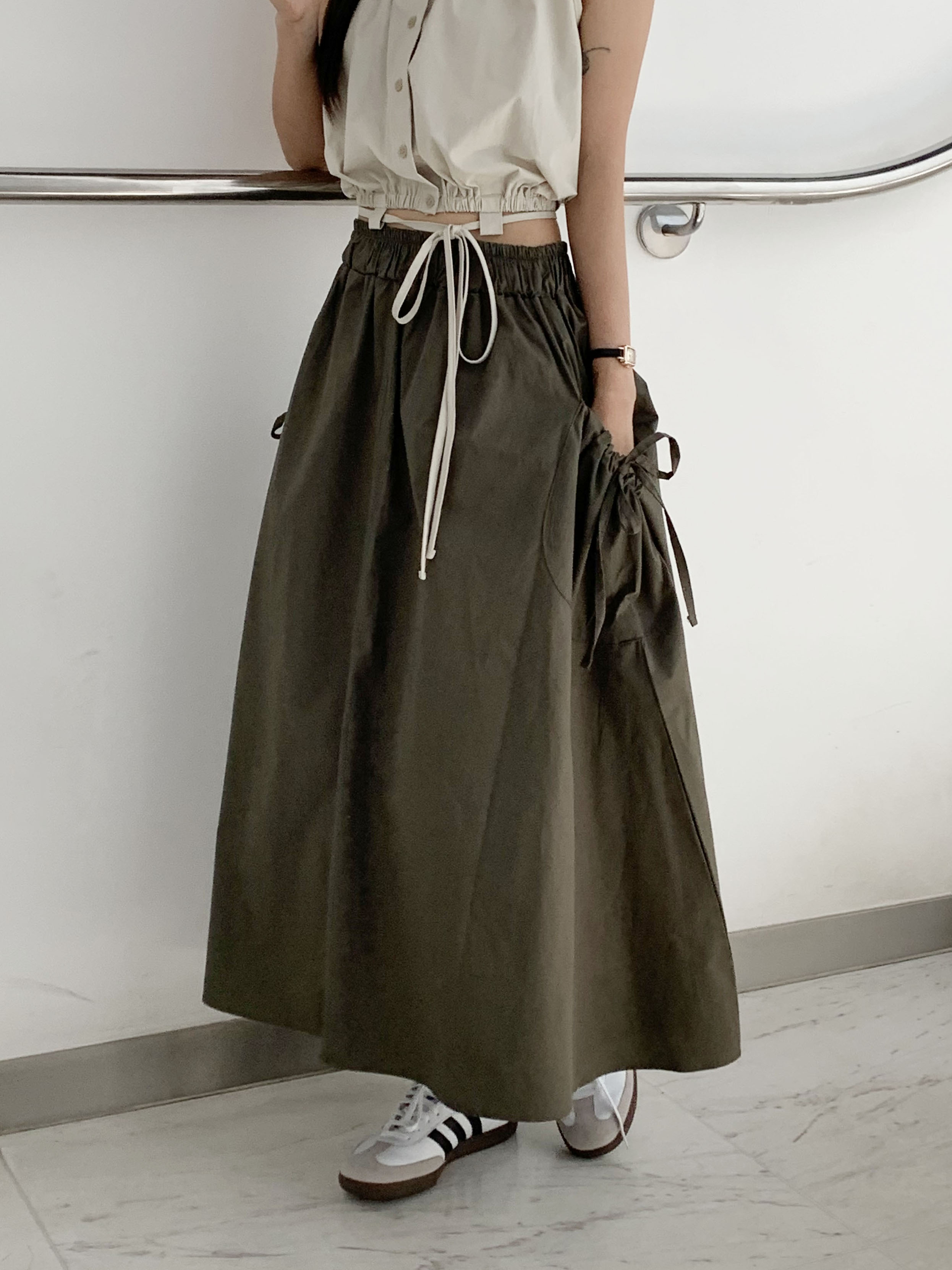 [✨1천장돌파/사계절]지젤 포켓 리본 셔링 카코 롱스커트- 3colors