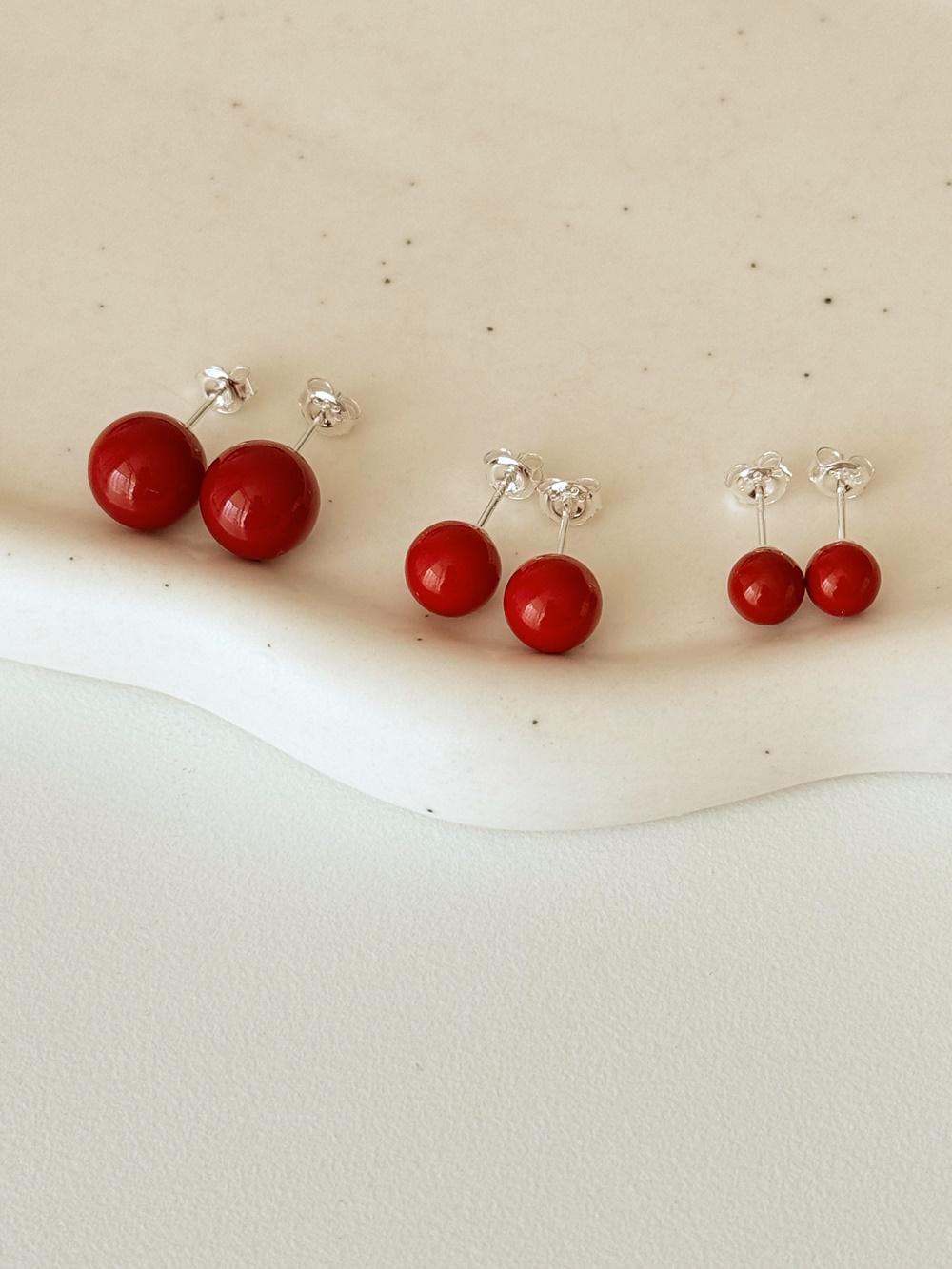 실버925 레드 진주귀걸이 6mm 8mm 10mm 순은귀걸이 알러지 없는 은귀걸이