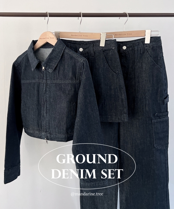 [당일출고🔥/코디세트/청청패션] 그라운드 봄 데님 청자켓 카고청바지 A라인 청치마 투피스 2 color