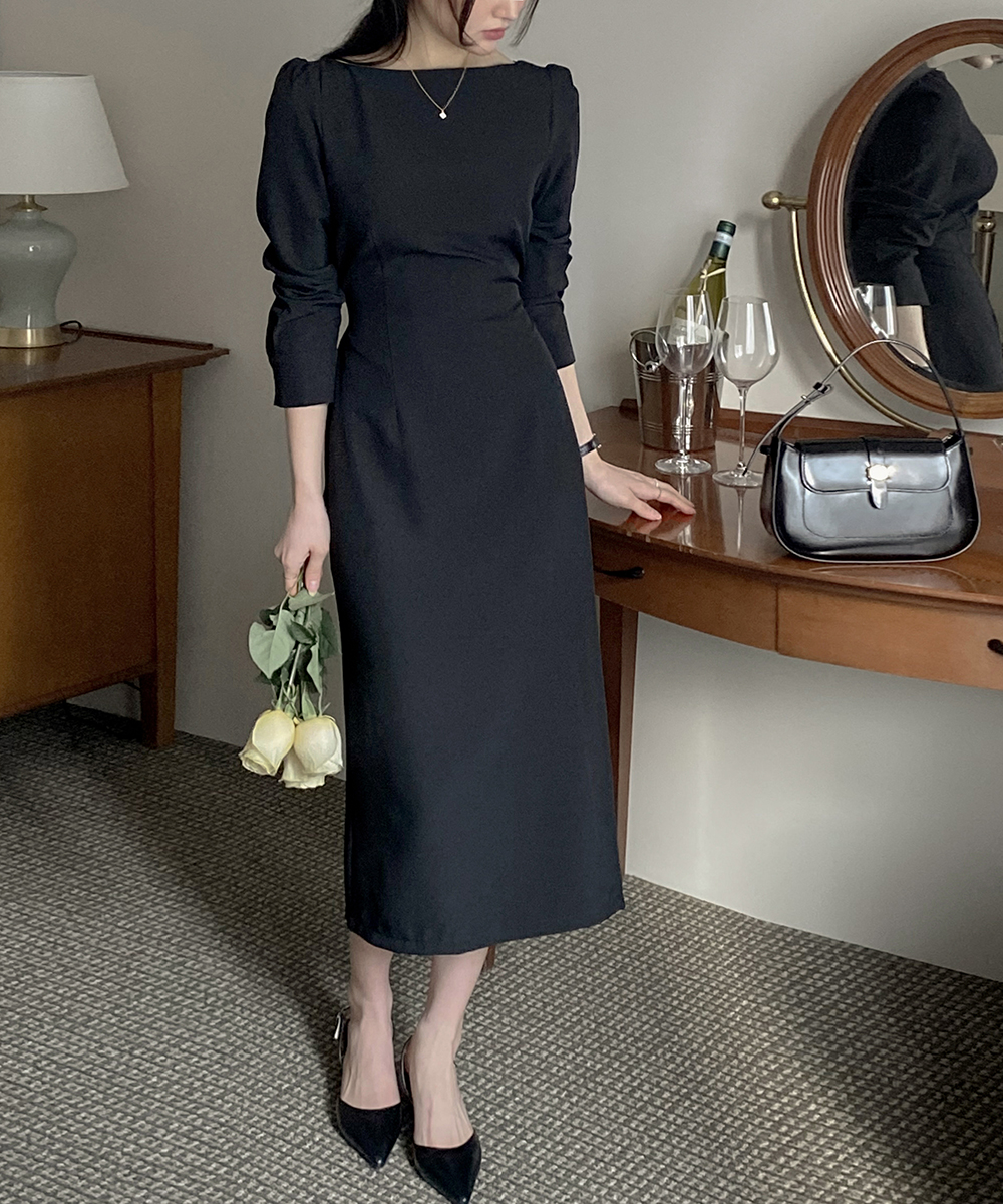 [단독][💐하객룩/연말룩/격식룩][S-L]MADE 모어엣 (No.6) 하객룩 입술넥 긴팔 원피스