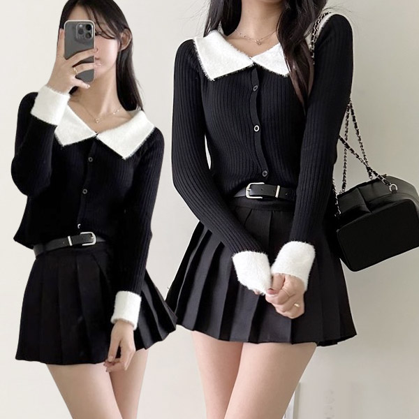 리즈앙고르카라배색긴팔니트CT