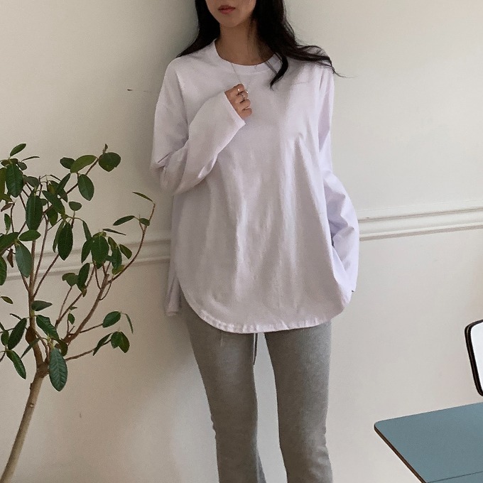 [ 레이어드/엉덮기장 ] 테지 밑단 굴림 루즈핏 긴팔 롱 티셔츠