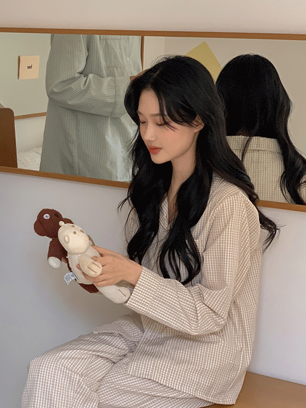 [4천장 돌파] J'eu 플랜 깅엄체크 파자마 잠옷 세트 5color, 2size