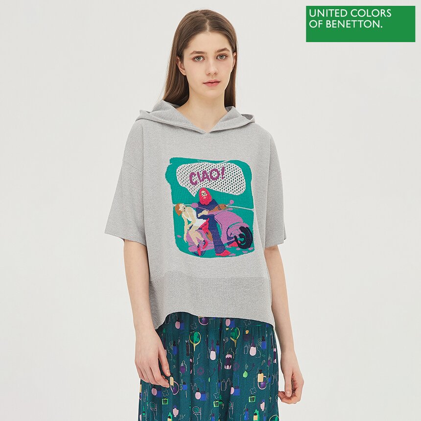 베네통 자수 후드 반팔 니트 BAKPA2411_GR