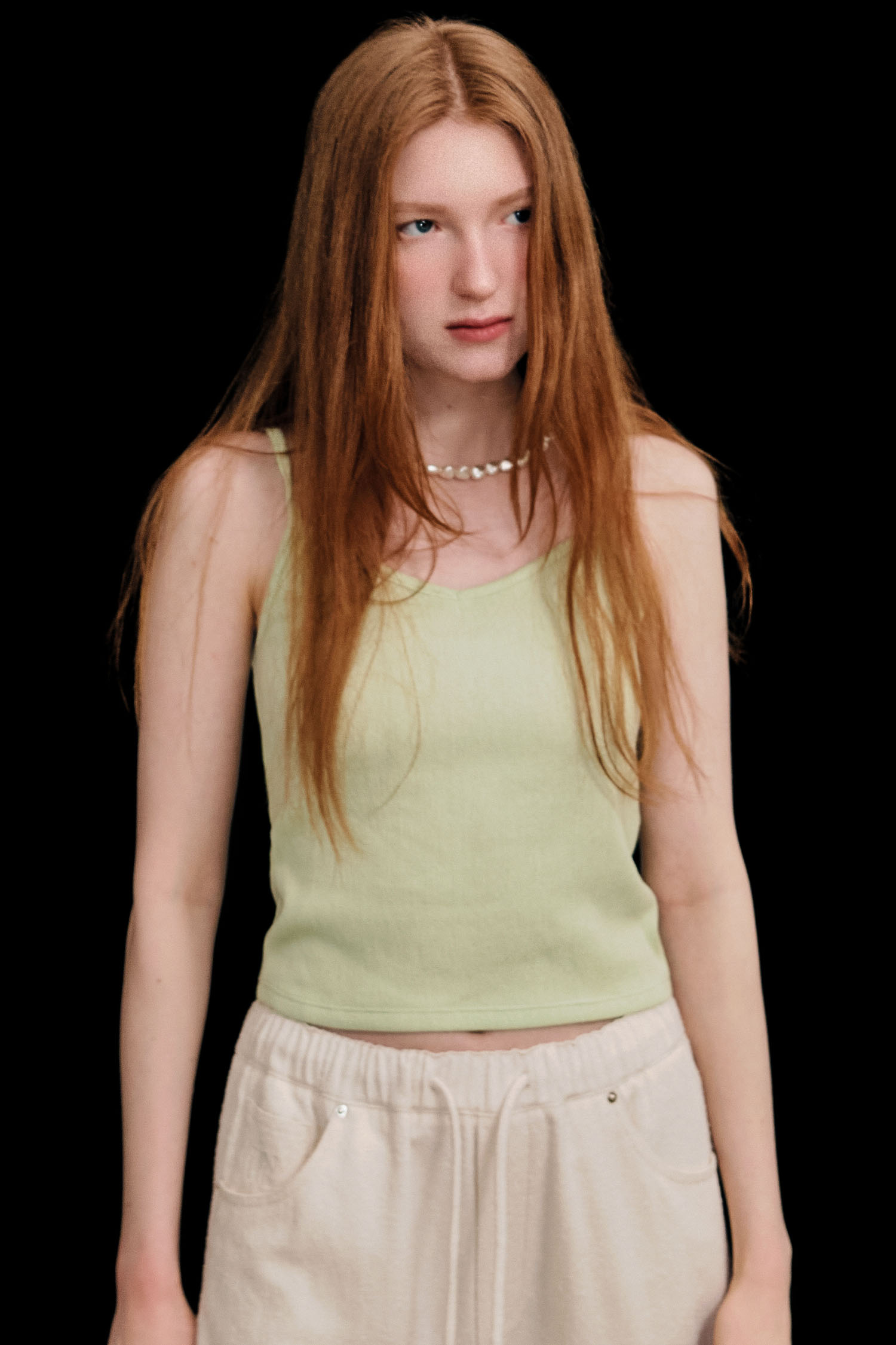 WOMAN 리브드 브이넥 슬리브리스 [MINT]