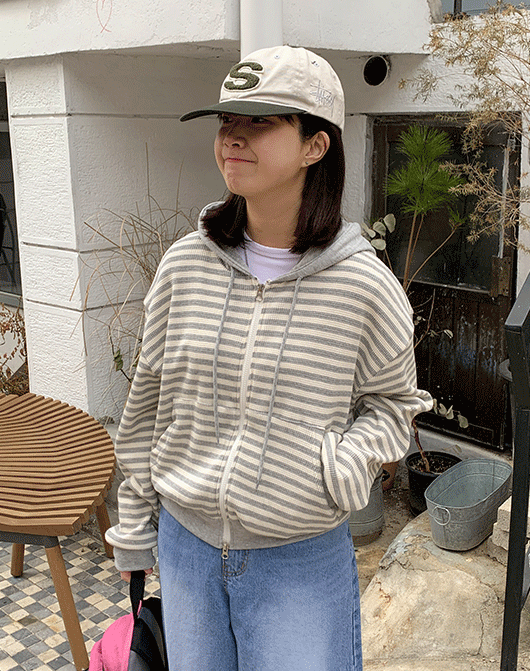 요노키 스트라이프 크롭 후드집업 (3color)