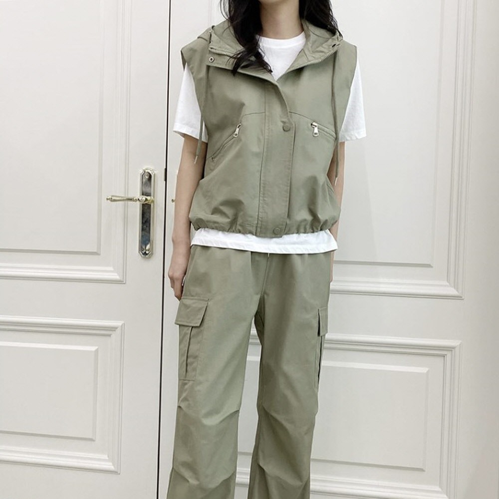 여자 봄 점퍼 후드 조끼 데일맄 카고 팬츠 세트