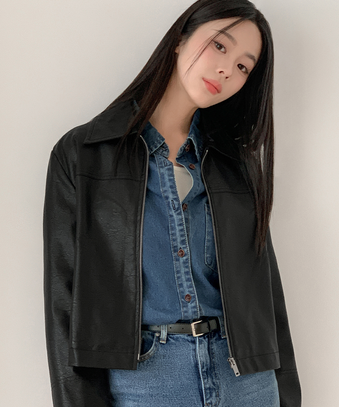 [MADE/7만장돌파]코이 세미크롭 레더 자켓 (S-XL/오피스룩/출근룩/빅사이즈/가을자켓/가울아우터/가죽자켓/크롭자켓)