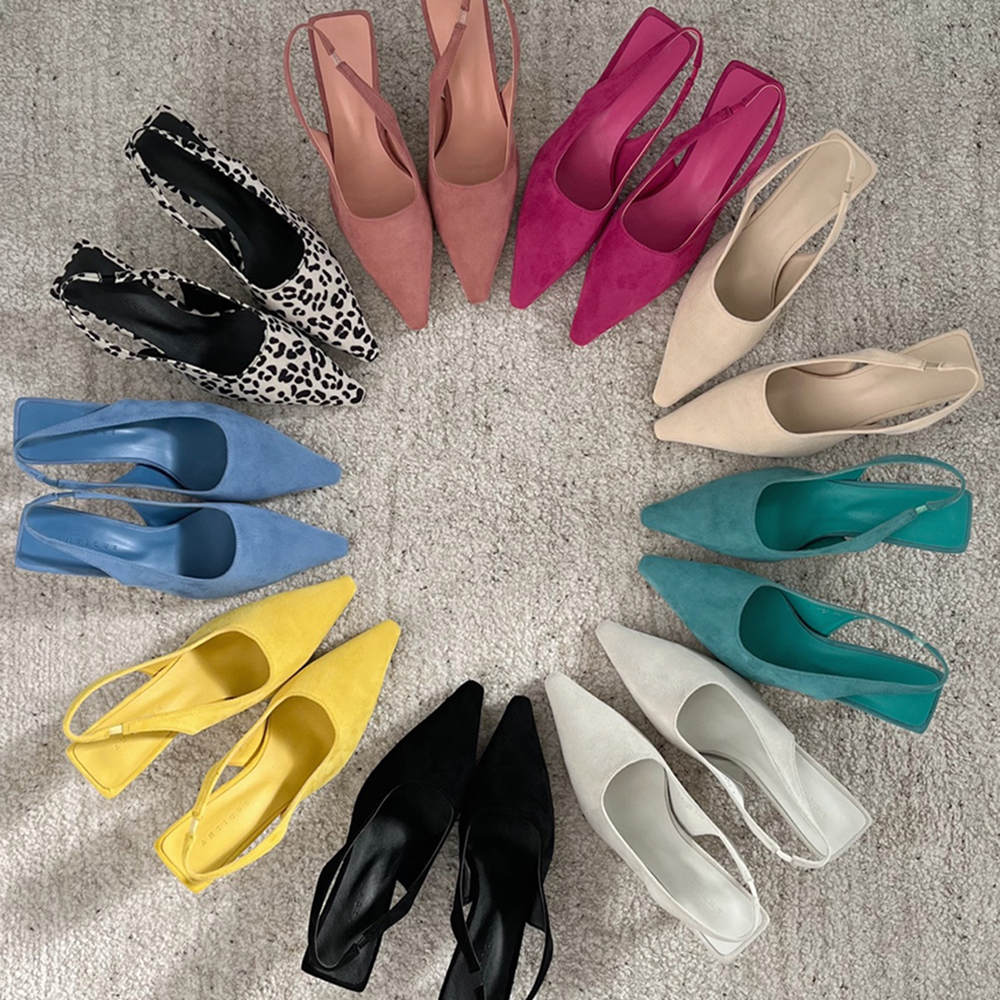 [최저가✨/당일발송🚚/봄신상/뒷밴딩/미들힐/무조건/컬러감대박/포인트/7CM/편안함/데일리/하객룩/모임룩/푹신푹신/뽀족코] 러블리 비비드 스웨이드 밴딩 스틸레토 슬링백힐5120