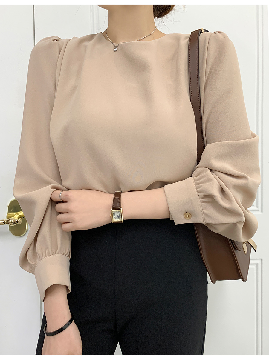 블라우스 여성스러운 퍼프디자인 라운드넥 링클프리 페미닌한 클래식한 시즌타지 않는