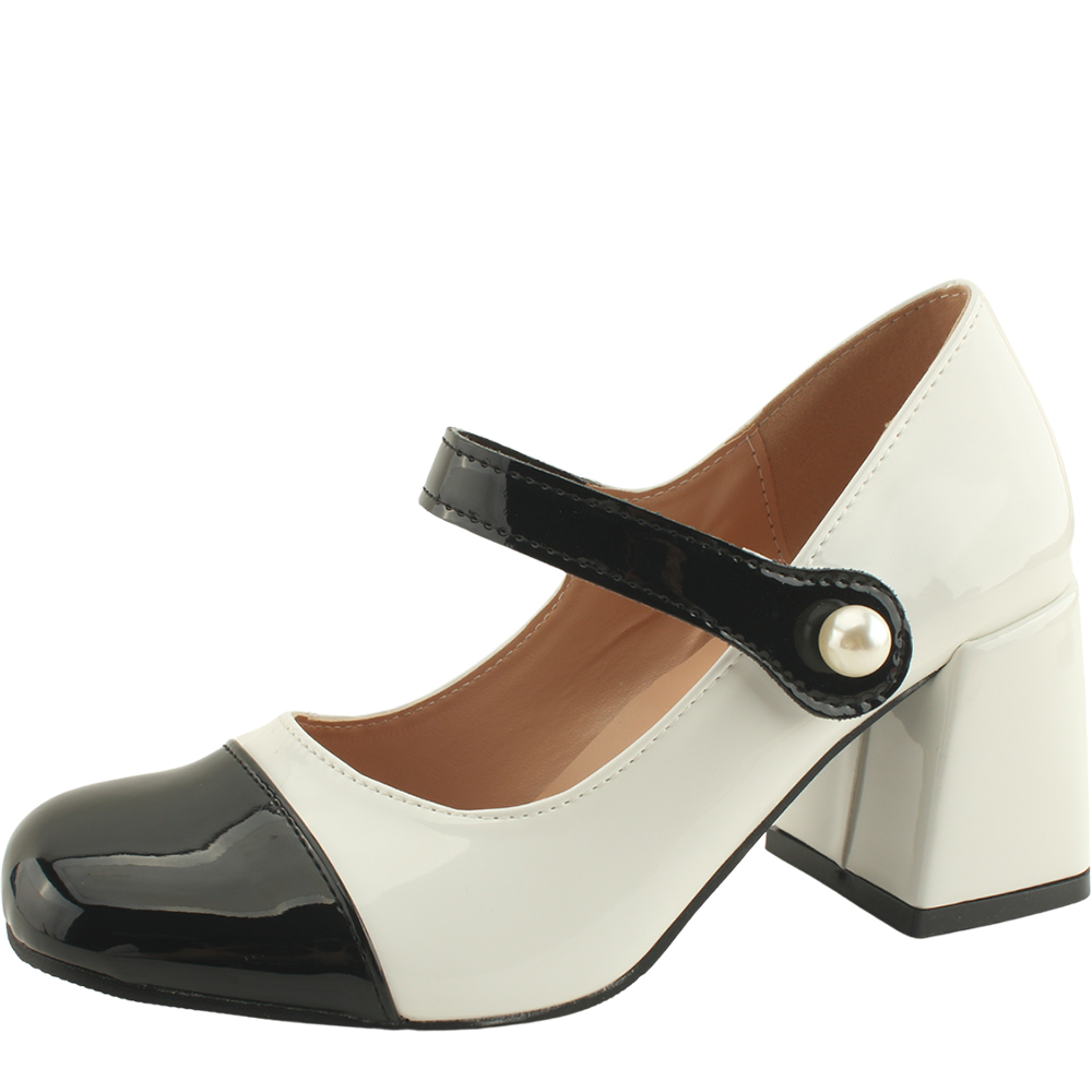애나멜 통굽 하이힐 메리제인 펌프스 7cm 블랙
