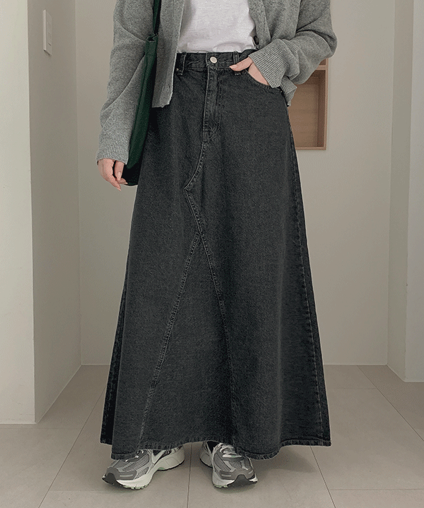 #11865 맥시 A라인 뒷밴딩 아메카지 데님 롱스커트 : 진청,블랙 2color / S~L