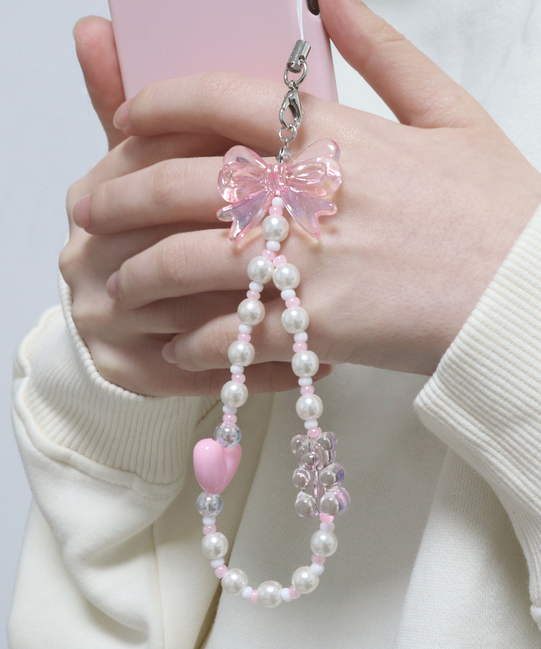 리본 곰돌이 진주 키링 휴대폰 가방 열쇠고리