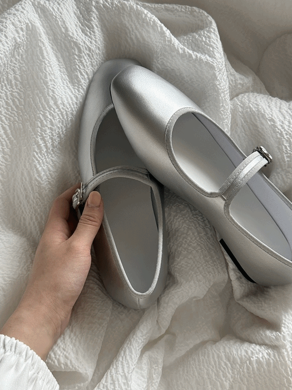실버 메리제인 슈즈 가볍고 착화감 좋은 버클 스트랩 말랑 플랫슈즈