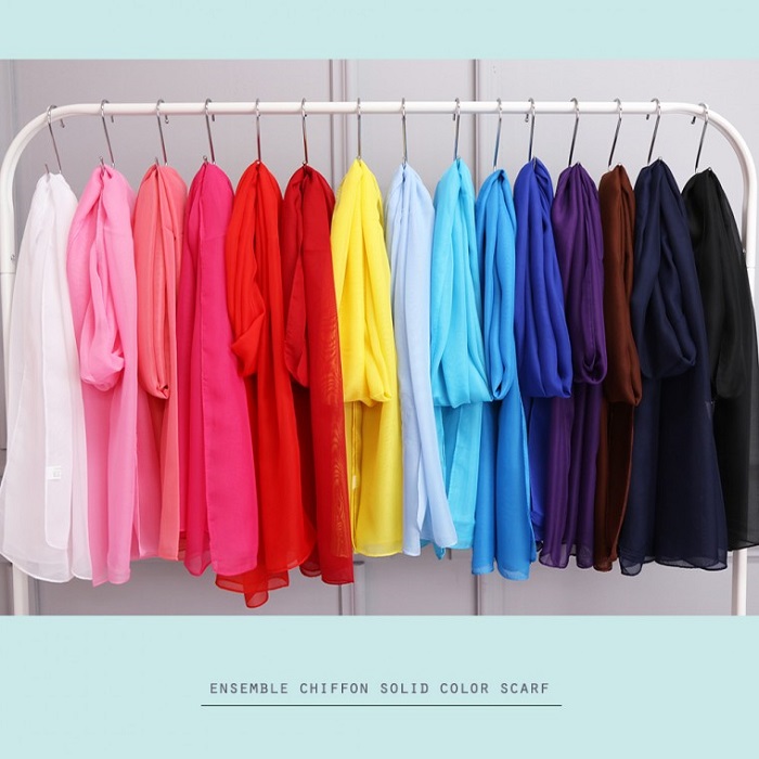 단색솔리드 쉬폰 스카프 단체 쁘띠 머플러 단색스카프