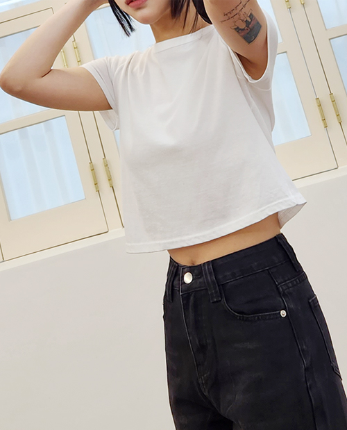 [단독][팔뚝살삭제/기본티] 국내생산 세미 크롭 반팔 티셔츠 - 3color (여리핏/코튼/스판/베이직/여름필수/이너티/무지티)