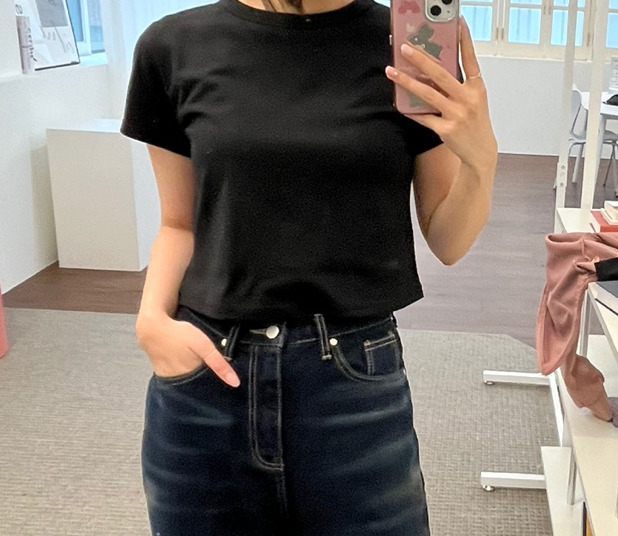 [단독][팔뚝살삭제/기본티] 국내생산 세미 크롭 반팔 티셔츠 - 3color (여리핏/코튼/스판/베이직/여름필수/이너티/무지티)