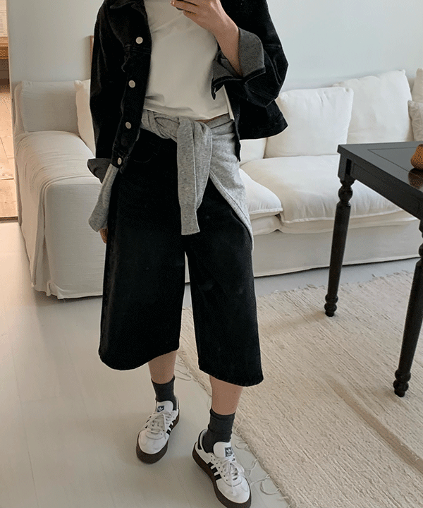 [와이드핏/7부/군살커버핏] 유나 흑청 데님 버뮤다 청 반바지 팬츠