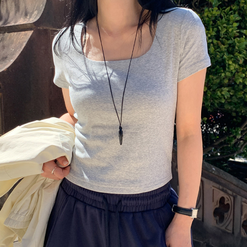 [직잭팟]🌸[단독] [직진배송/35만장돌파/S,M,L/숏,롱][MNLB] 하프 클레어 스퀘어넥 쫀쫀 슬림 반팔 티셔츠