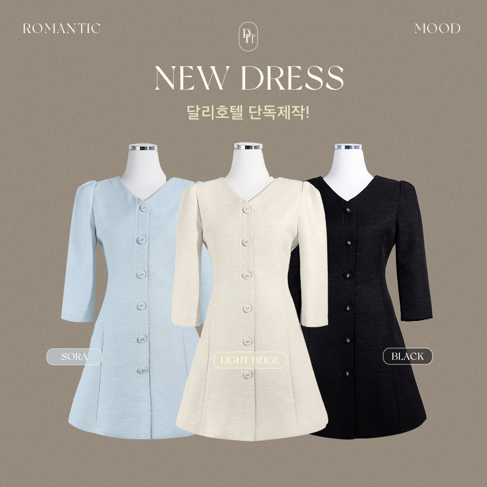 [Dali made/모델PICK]시니엘 브이넥 버튼 A라인 미니 트위드 원피스(하객룩)