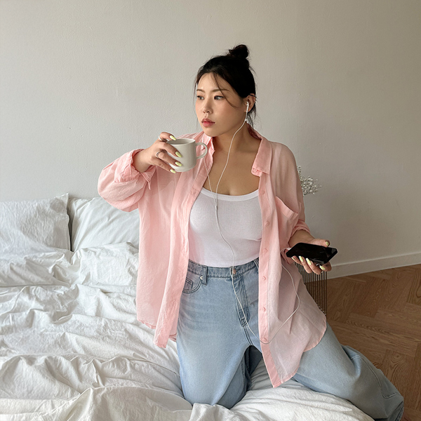 [제작/빅사이즈]이블렛 논벨드 거즈 포켓 언발 롱셔츠 제이스타일