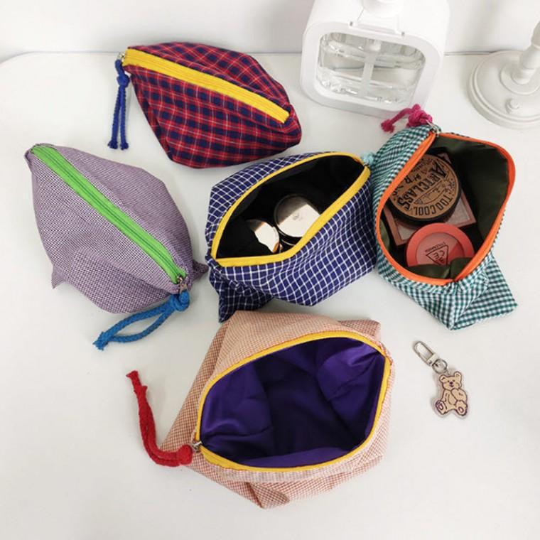 5컬러 체크 멀티 수납 파우치 심플한 파우치 여행용 파우치 휴대용 파우치 화장품 파우치 체크파우치