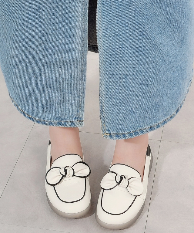 베흐노 통굽 라텍스 슬립온 리본 가죽 꼬임 접어신는 단화 로퍼