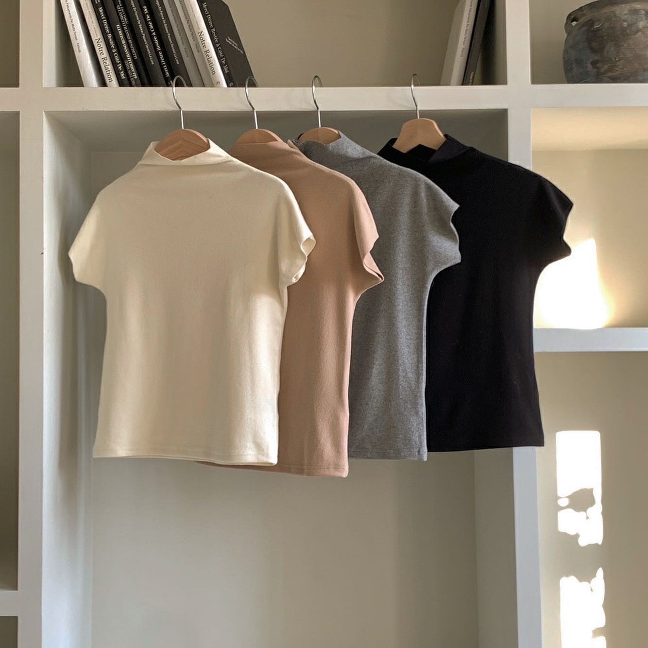 투어스 캡소매 쫀쫀 슬림핏 부들부들 이너 반폴라 티셔츠