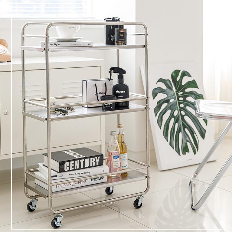 3단 이동식 스텐 트롤리 간식카트 화장대카트 틈새수납 주방카트