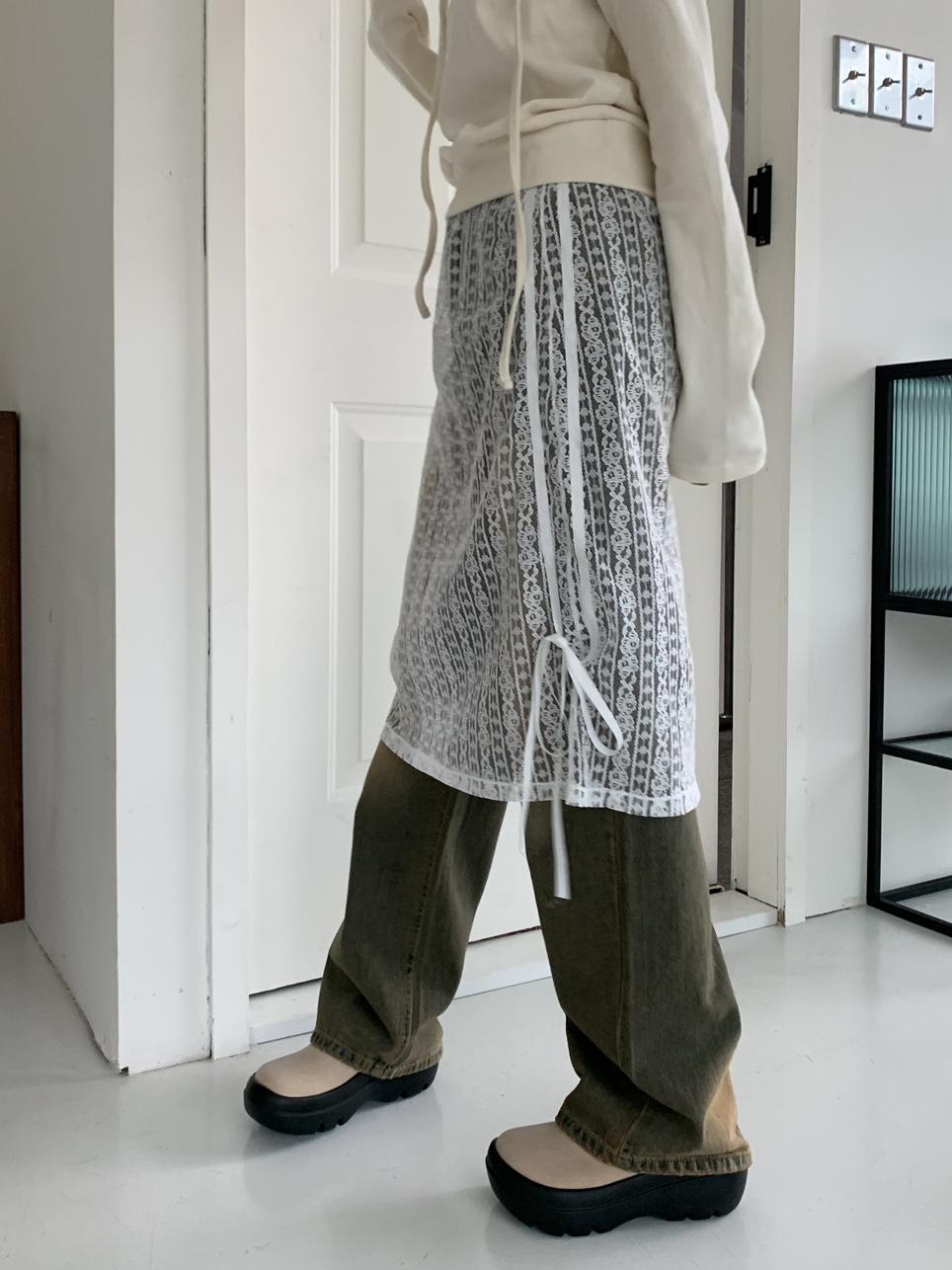레이스 투 라인 리본 레이어드 스커트 [2col]