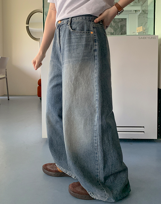 [3천장돌파]롯쿠 와이드 워싱 데님 팬츠 (2color)