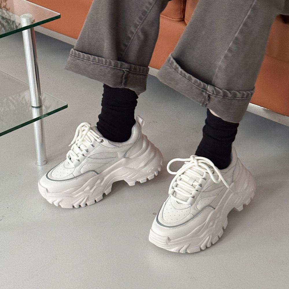 발볼 넓은 가죽 통굽 어글리 운동화 키높이 플랫폼 스니커즈 6.5cm굽