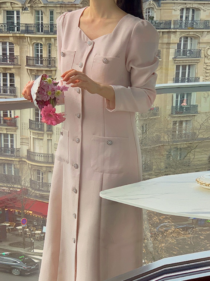 [프리미엄원단] 프니듀라 트위드 스퀘어넥 롱 원피스 ( 봄-가을-데일리룩-데이트룩-캐주얼룩-캠퍼스룩-러블리룩-하객룩-격식룩-출근룩-페미닌룩-빅사이즈-120사이즈-자체제작-체형커버-여리핏-통통녀 )