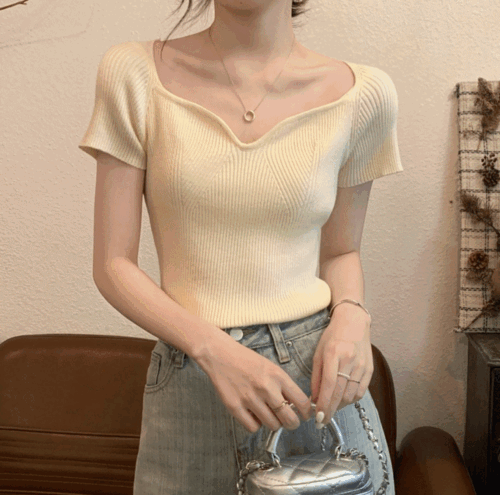 소브 프렌치 스퀘어 벨벳 니트 반팔 티셔츠