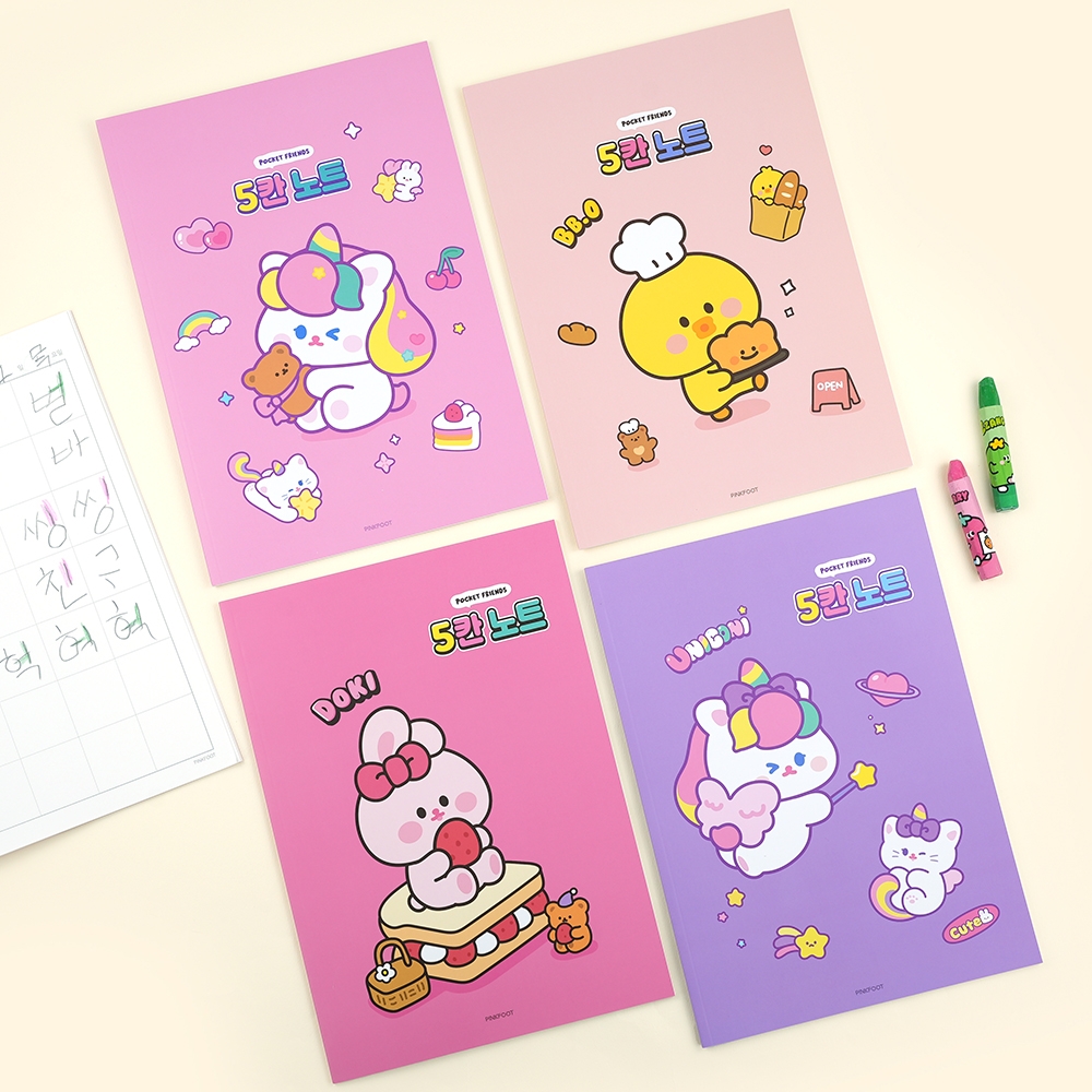 쪼꼬미 5칸 노트 핑크 초등노트 받아쓰기 한글공부 여아
