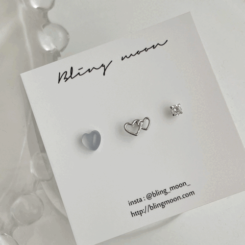 [3 set] 스카이 더블하트 피어싱 세트 / 데일리 심플 러블리 블루